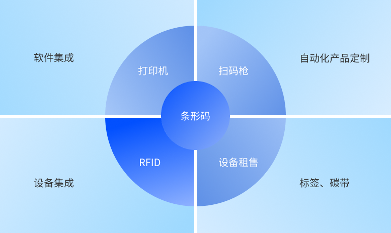 上海鋯瑞技術(shù)有限公司業(yè)務(wù)分為9大模塊,條形碼,RFID,打印機(jī),掃描槍,軟件集成,設(shè)備集成,自動化產(chǎn)品定制,標(biāo)簽碳帶和設(shè)備租售。 以條形碼和RFID為起點(diǎn),以打印機(jī),掃描槍和標(biāo)簽碳帶為基礎(chǔ),逐步技術(shù)延伸,層層遞進(jìn),實(shí)現(xiàn)識別軟件系統(tǒng)開發(fā),自動化檢驗(yàn)設(shè)備集成,自動化產(chǎn)品定制等自主創(chuàng)作研發(fā)能力,滿足各類企業(yè)物聯(lián)網(wǎng)應(yīng)用需求。
